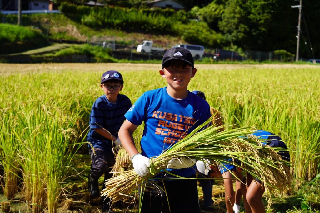 今回は、シーズン前ということもあり田植えに参加いただいた、立命館大学ラグビー部のメンバーは参加できませんでしたが、RGAの子どもたちがたくさん参加してくれました!