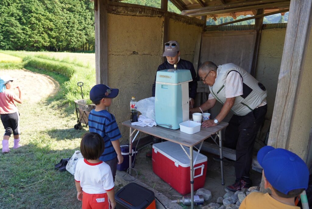本当に暑かったので、この田んぼの持ち主で、「明日の走井を考える会」の小林さんが、かき氷を振舞ってくれました!
